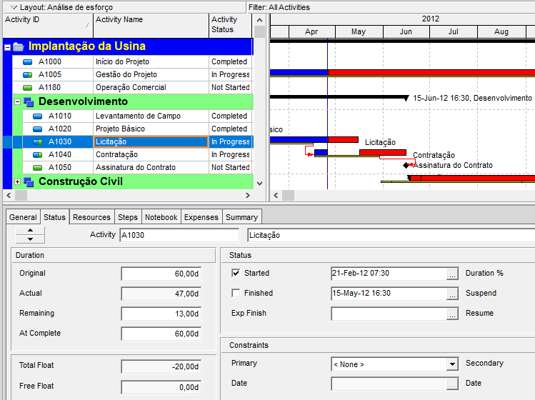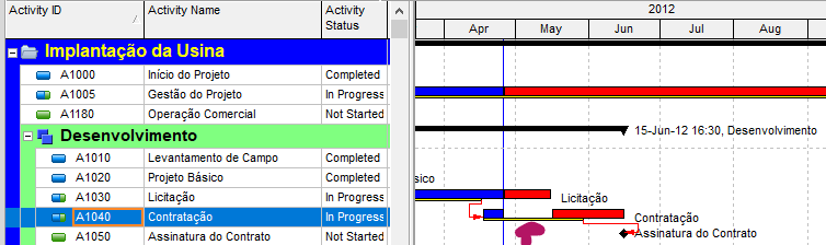 Se um Início Real for aplicado a uma sucessora antes de um Término Real for aplicado ao predecessor, o sucessor é considerado Out of Sequence (Fora de sequencia).