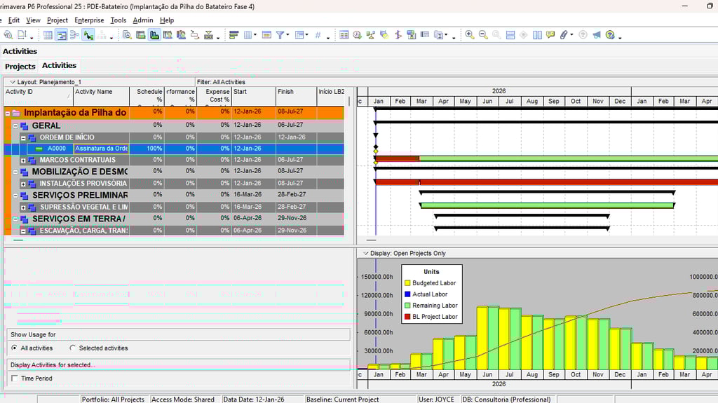 Esses novos campos auxiliam na avaliação da eficiência da mão de obra, na previsão da disponibilidade de recursos e na identificação de possíveis atrasos devido à queda de produtividade. Os novos campos estão disponíveis nos níveis de atividade e atribuição e podem ser adicionados como colunas na visualização em grade e na guia "Detalhes das Atribuições" da página "Atividades". Essas colunas também são visíveis na guia "Detalhes do Valor Agregado" da página "Atribuições". Elas também estão disponíveis para filtragem, agrupamento, classificação, rótulos de barra e rótulos de caixa da rede de atividades.