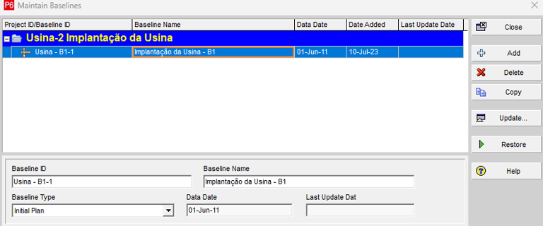 Maior clareza na manutenção de linhas de base: Você pode visualizar o ID de uma linha de base ao clicar nela na caixa de diálogo Manter linhas de base (Mantain Baselines):
