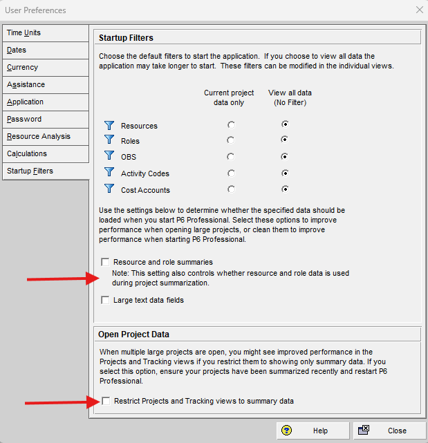 A transferência de objetos de dados grandes do banco de dados para a memória de acesso rápido do computador (o que chamamos de "carregar" os dados) pode afetar o desempenho do P6 Professional. Alguns dos maiores objetos de dados usados pelo P6 Professional são calendários, blocos de anotações e as seções "Notas para Recursos" e "Feedback de Recursos" na guia Detalhes do Feedback da janela Atividades. Até agora, a maioria desses objetos de dados grandes era carregada quando você abria um projeto. No entanto, se um projeto for extremamente grande, a necessidade de carregar todos esses dados ao abri-lo pode causar atrasos. Em certas circunstâncias, pode ser mais eficiente carregar esses objetos de dados grandes somente quando necessário.
