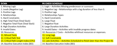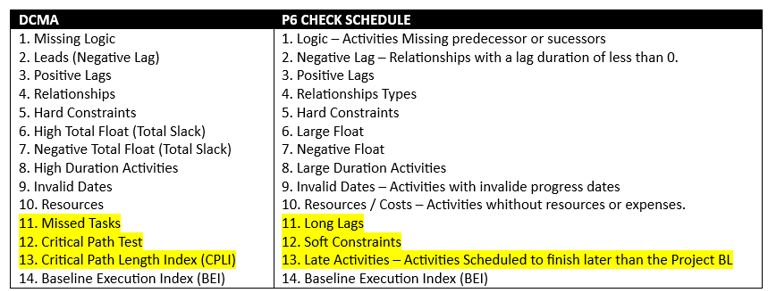 Este é o 3º item da lista de 14 itens de verificação do DCMA e do Primavera P6 Check Schedule.